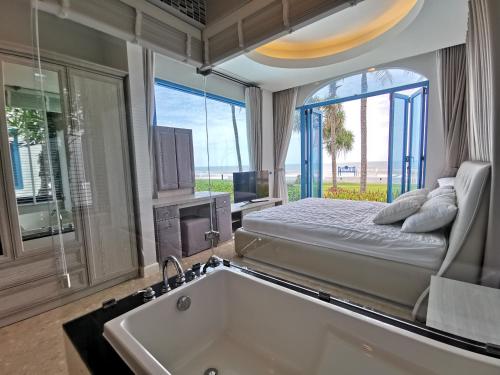 Patchy rain nearby : It might rain Daily Chance of Rain 88 % : Temperature Min. 23.5 celsius Max. 27.8 celsius, Average 25.6 celsius.Check Distant from your location to Luxury Beachfront Villa @The Crest Santora Huahin Luxury Beachfront Villa @The Crest Santora Huahin